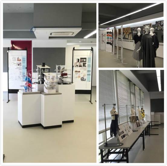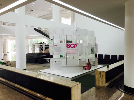 SCF学院项目制教学模式注重培养学生独立进行创造性工作能力。逸夫楼一楼展示了二年级时尚室内设计专业学生“视觉营销”课程学习成果。来自毛里求斯的萨娜同学与中国同学合作,设计出环保、组装、可循环的课程展示道具,并在学院校外实习基地——ENCORE公司支持下,完成了从概念设计、技术深化、实样制作到现场装配的所有流程。服装创意设计二年级的“多样化设计”课程,则让同学们关爱身边的特殊消费群体,培养同学们独立寻找兼具社会责任感与商业前瞻性项目的时尚创新精神。