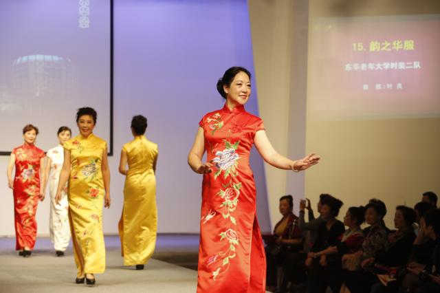 在当天的展示中,共有来自浦东、宝山、杨浦、徐汇等区的15支中老年时装表演队参加活动,分别进行了旗袍、礼服等系列服装的展示。担任本次示范展示的15位教练均为上海市中老年服饰表演教学研究社会员,他们是资深的服饰表演教学老师,有着丰富的教学经验,台上展示的模特都是各教练麾下队员。标准的T台,标准的猫步,中老年模特们的气场不输任何青春时尚的年轻模特,一个个自信而充满魅力地向观众展示了娴熟的表演技巧和成熟优雅的风采,体现了上海中老年人特有的精神风貌。