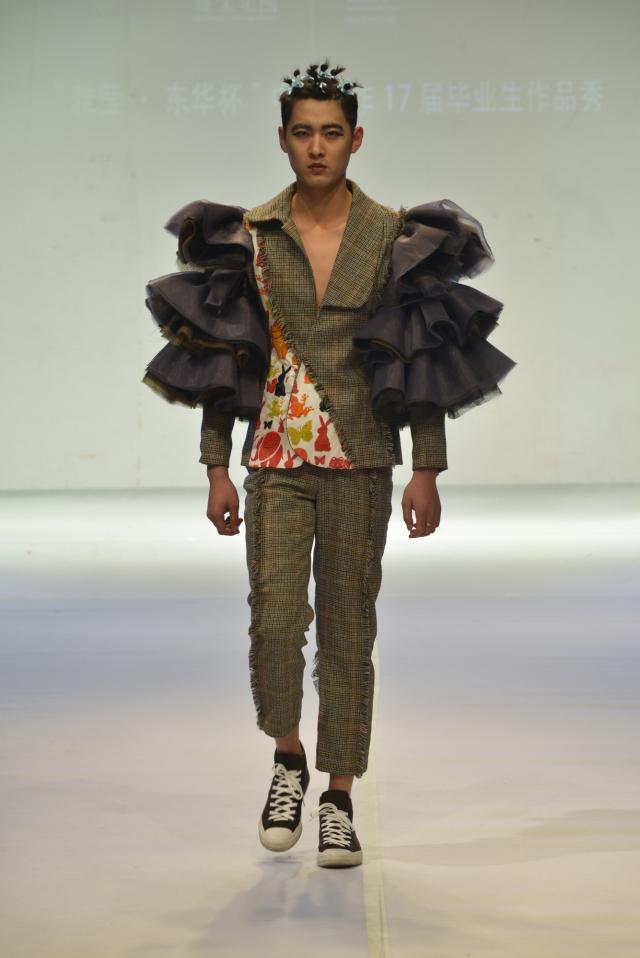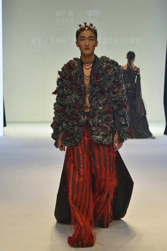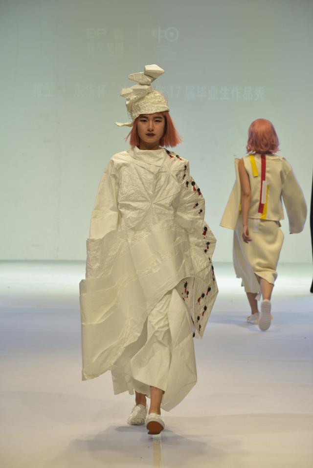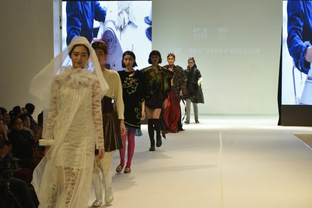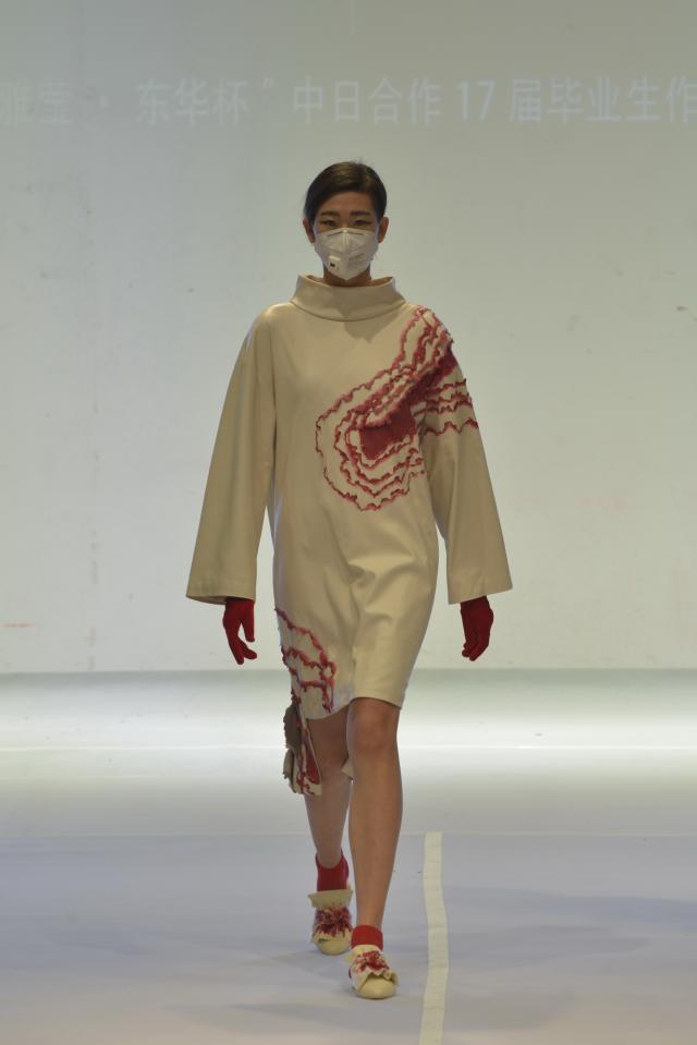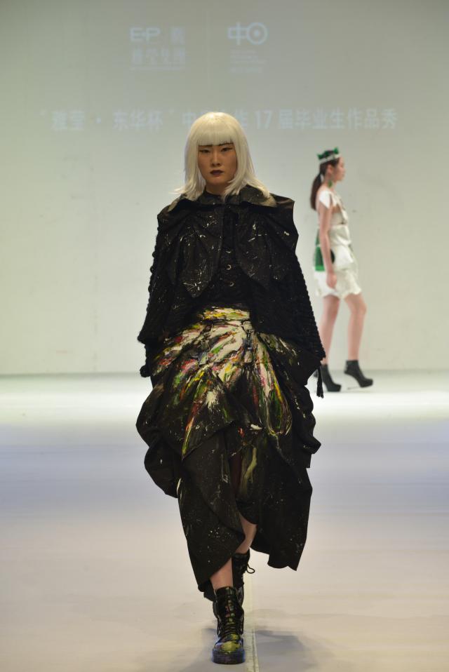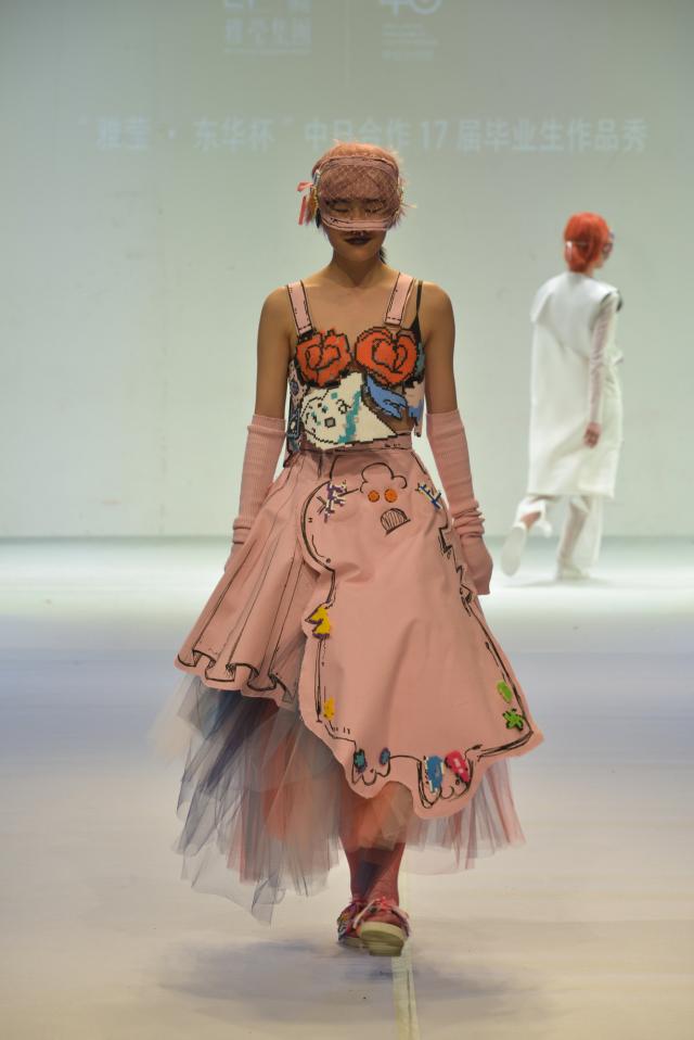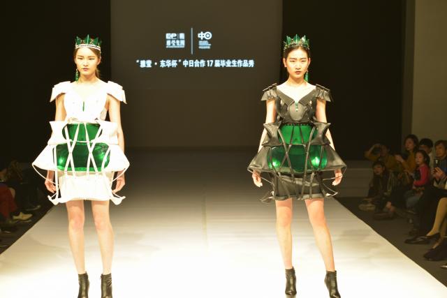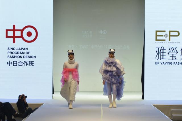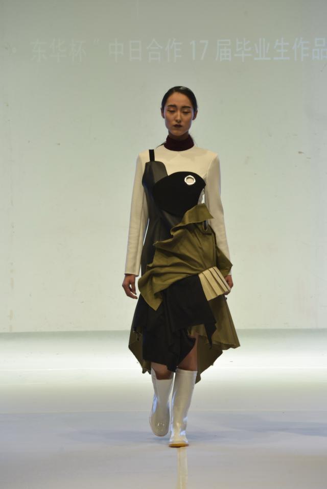 中日合作班自办学起便与日本文化服装学院合作,从服装设计理论到实际制版与制作能力的教学,均采用日本文化服装学院教学标准,致力将每一名学生的个人特色与特长发挥,培养学生独立完成从设计到制作的能力。2017届学生是中日合作班第11届毕业生。“3+1”的联合培养模式,带给中日合作班学生的不仅有出色的设计创作能力与制版制衣技术,更有国际化的视野和理念。这些作品均为他们在日本文化服装学院交流学习时期制作完成,这群年轻的设计师怀揣着对服装设计独到的理解与感悟,将设计思考、生活经历与文化态度融入作品中,风格鲜明,各具特色,体现了中日合作专业融创新性、时尚性、技术性于一体的办学理念,呈现了一场精彩纷呈的毕业秀。