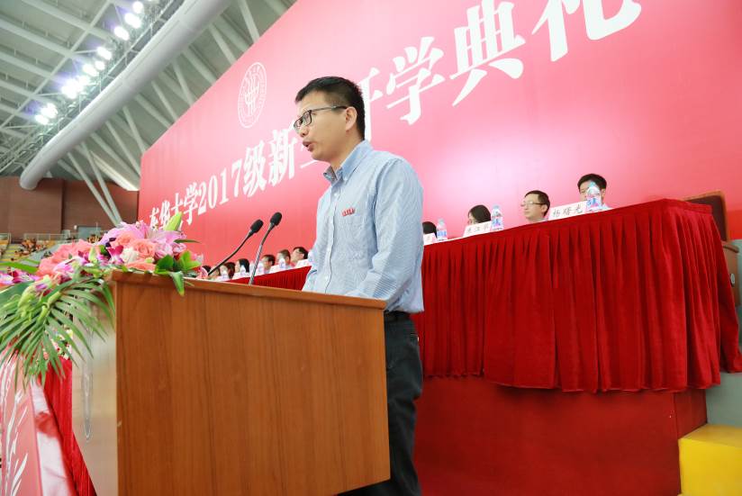 材料科学与工程学院杨曙光教授作为教师代表赠言2017级新生。他希望同学们不仅从老师身上学习知识和智慧,还要从同辈身上学习,三人行必有我师。他告诫同学们要敏而好学、不耻下问、善于沟通,正确理解大学的“自由”,不要把“为所欲为”当作“自由”,在大学里,自觉自律者方得最大的自由、最大的空间,只有那些真正懂得如何在大学宝藏中探索自我、挑战自我,同时又懂得能力边界、人生边界的同学,才会真正享受到大学的美好时光。