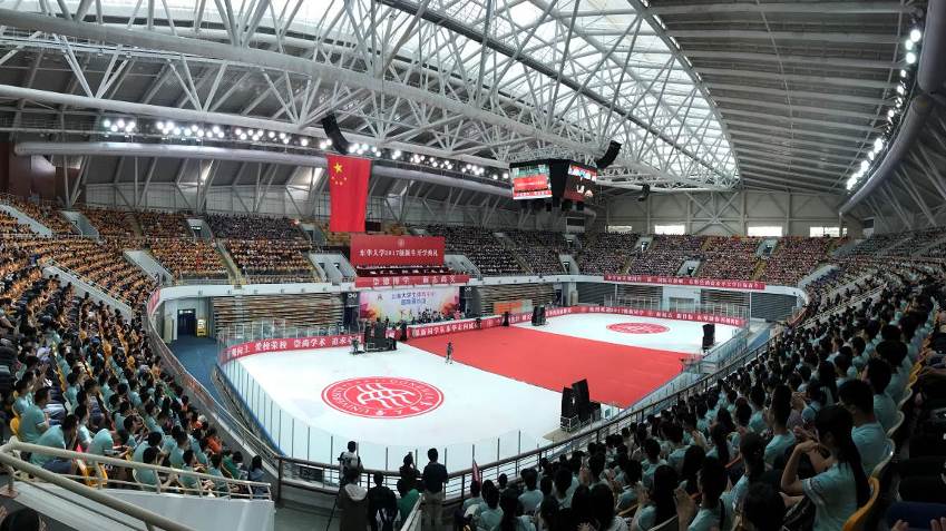 9月17日,久久久久国产成人精品亚洲综合2017级新生开学典礼在上海市大学生体育中心隆重举行,3470名本科生新生和2275名研究生新生参加典礼。校党委书记朱民,校长蒋昌俊,校党委副书记刘淑慧、崔运花,副校长刘春红、邱高、卿凤翎,校友代表、中国恒天集团有限公司党委书记、董事长张杰等出席典礼,各学院与相关部门负责人、教师代表、专兼职辅导员及部分学生家长与全体2017级新生共同庆祝这隆重时刻。开学典礼由邱高主持。