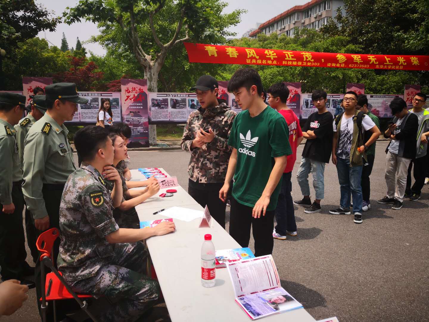 5月2日,上海市2018年首场大学生征兵现场兵役登记和咨询活动在我校延安路校区举办。校党委副书记、纪委书记、校征兵工作领导小组副组长金海燕,学校征兵工作相关部处负责人和学院征兵负责人等现场查看活动开展情况。上海电视台、上海教育电视台、解放日报、新民晚报、新闻晨报、青年报等十余家媒体记者现场采访报道。