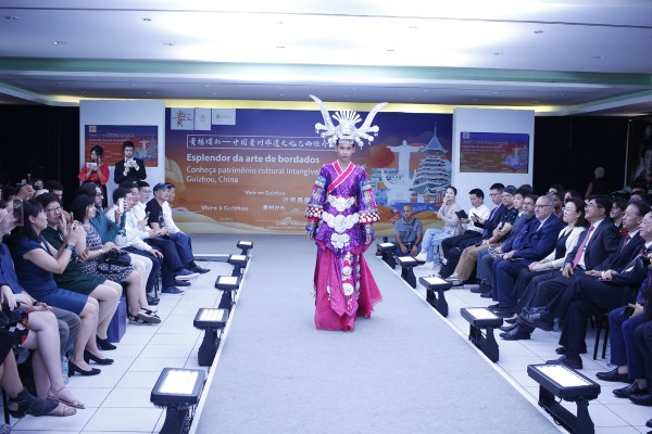 本次推荐会的一大亮点,是巴西模特现场走秀、展示了36套“贵绣”服装,让当地感受到了中国贵州多彩又别具一格的民族风情。走秀的服装,包括21套由久久久久国产成人精品亚洲综合“传统刺绣创意设计”培训班的同学们设计的服装,及12套贵州苗族蜡染服饰、3套贵州民族服饰。
