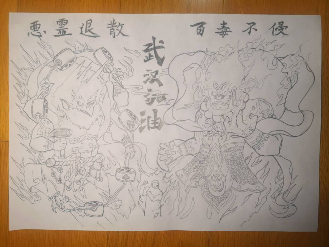 (信息学院19级学硕党支部张笑源同志为武汉加油创作的漫画)