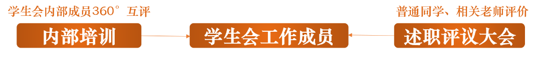 学生会大幅度进行工作部门及学生会工作成员数目的精简,形成“主席团+工作部门”的工作模式为骨骼。开设《学生会理论与实践》选修课,由学生会秘书长封华担任主讲人,以该课程为主要平台,系统培养业务熟练、能力可靠的学生会后备力量,学员自愿选择项目工作组进而转化为学生会的中坚骨干。