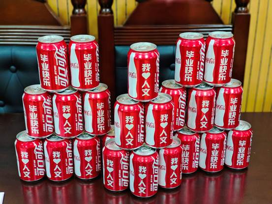 (为毕业生党员准备印有“毕业快乐”、“我爱人文”字样的可乐)