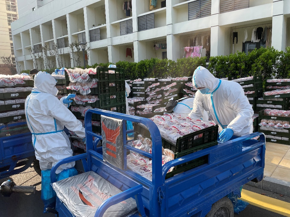 管理学院的胡小红、时尚科创中心的林靖两位驻楼志愿者老师和驻楼辅导员高加加,每天为延安路校区8宿近千名同学发放三餐、安排核酸、分发物资、督促测温、配合转运、疏导心理……连夜作战,努力做到防疫工作平稳有序,让同学们放心且温暖。