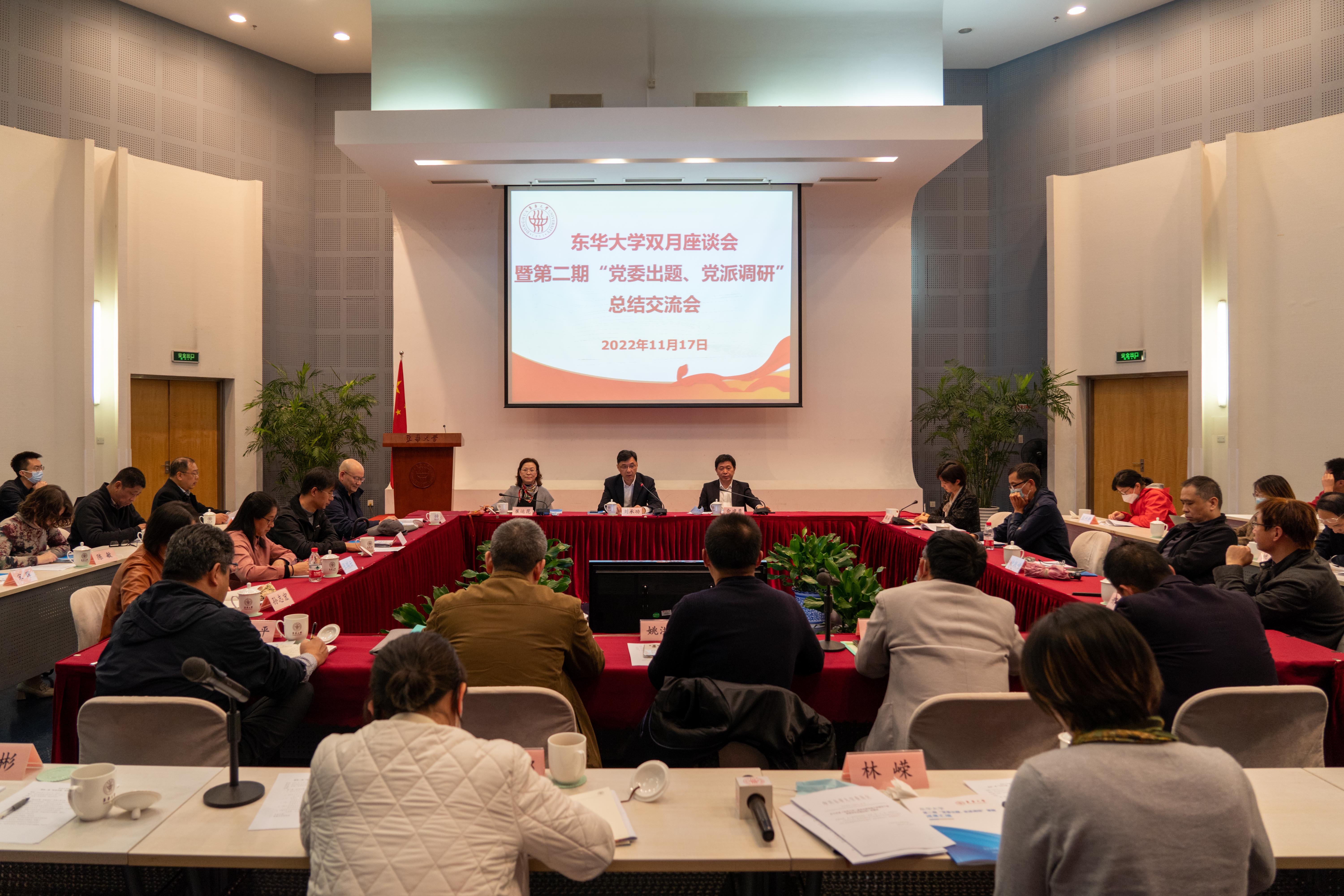 11月17日,学校召开双月座谈会暨第二期“党委出题,党派调研”总结交流会。党委书记刘承功、校长俞建勇、党委副书记崔运花、校统战工作领导小组成员单位主要负责人与各民主党派、统战团体负责人、各级人大代表、政协委员、党外人士代表和课题组主要成员与会。会议由党委常委、统战部部长朱英主持。