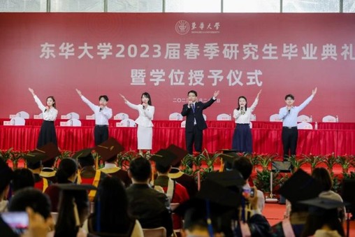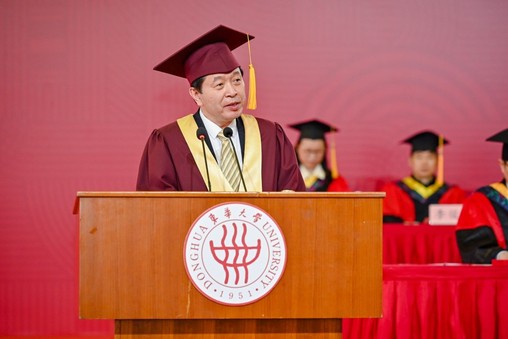 同学们,“崇德博学、砺志尚实”的校训精神是东华赋予我们的精神烙印。“桃李春风又一年”,在你们即将奔赴新的人生之际,母校已为你们撑起远航的桅樯。征途漫漫,惟有奋斗。今年我把“奋斗”这个主题词赠予大家,希望你们无论何时、碰到何事都能保持踔厉奋发、勇毅前行的奋斗精神,都能走好属于自己的奋斗之路。同学们,“千川汇海阔,风好正扬帆”,愿你们以更加宽阔的胸襟、更加渊博的学识、更加奋进的姿态去拥抱机遇与挑战并存的明天!